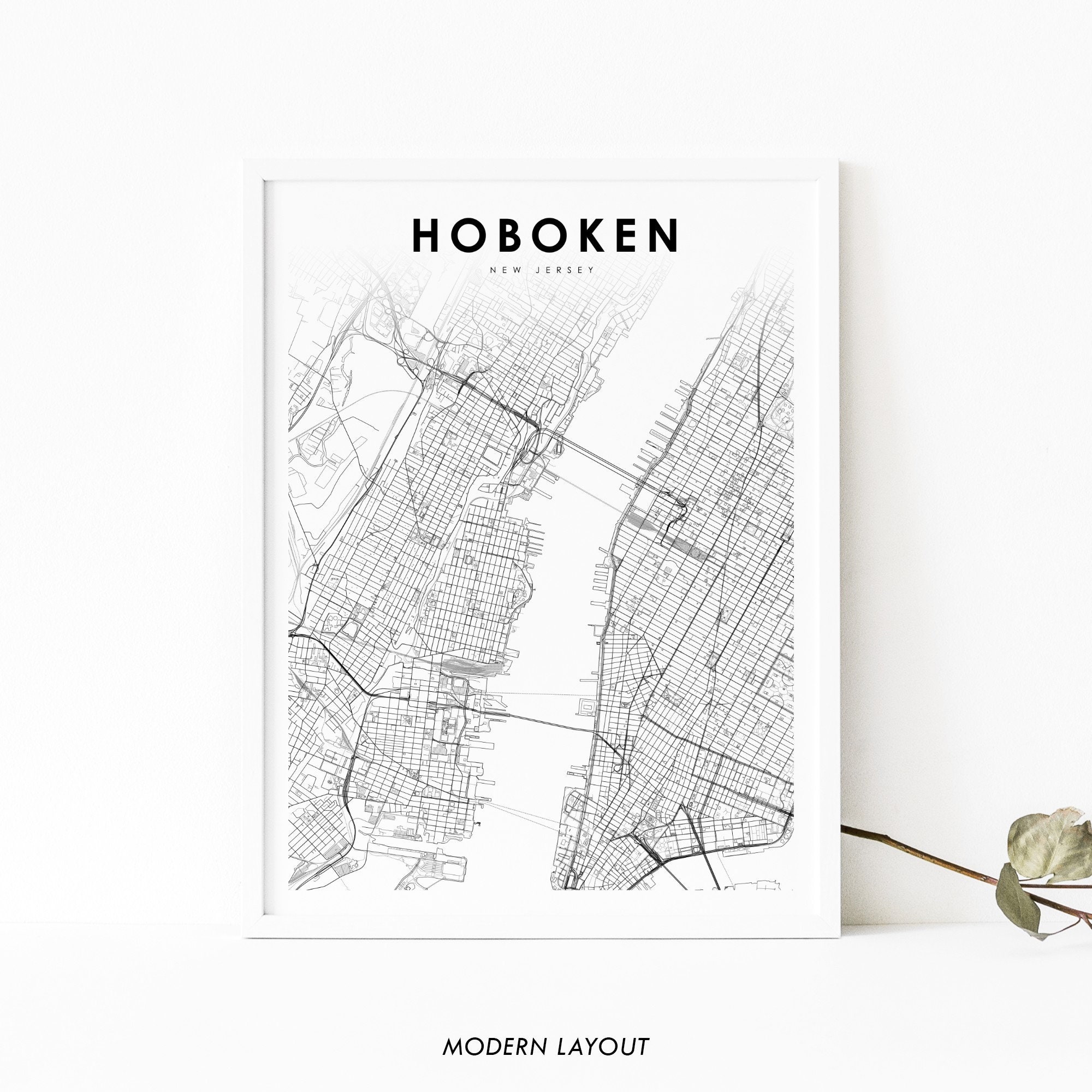 Hoboken Nj Map Print New Jersey Usa Map Art Poster Hudson Etsy